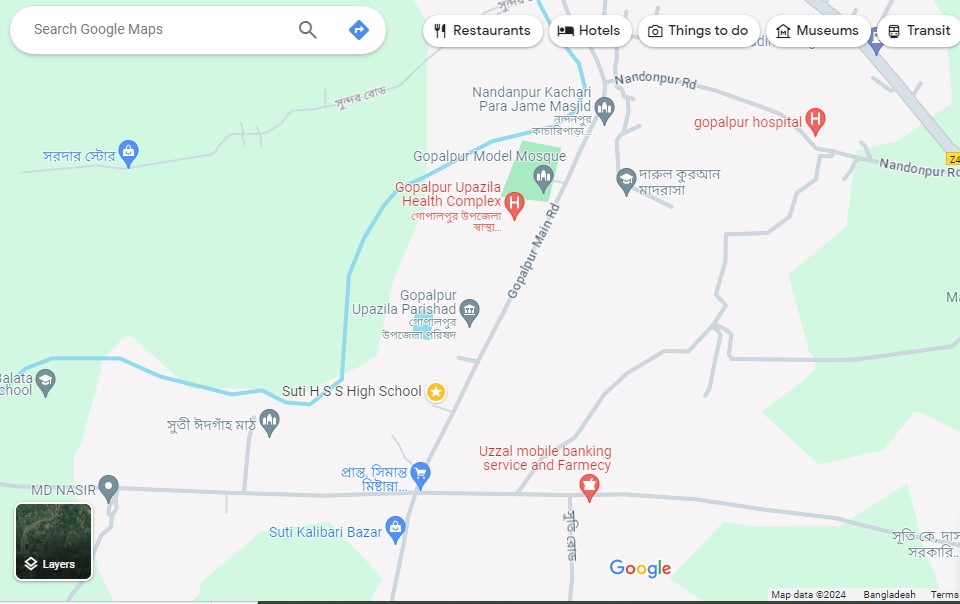 টাংগাইল জেলা সদর হতে গোপালপুর উপজেলার দুরত্ব ৪২ কি: মি:। টাংগাইল হতে ব্যক্তিগত গাড়ি, সিএনজি, বাসযোগে গোপালপুর আসা যায়। তাছাড়া ঢাকা বা উত্তরবঙ্গ হতে ট্রেনের মাধ্যমে বঙ্গবন্ধু সেতু (পূর্ব) ষ্টেশনে এসে তারপর সিএনজি যোগে গোপালপুর আসা যায়। ঢাকা হতে গোপালপুর উপজেলার দুরত্ব ১৪০ কি. মি.।